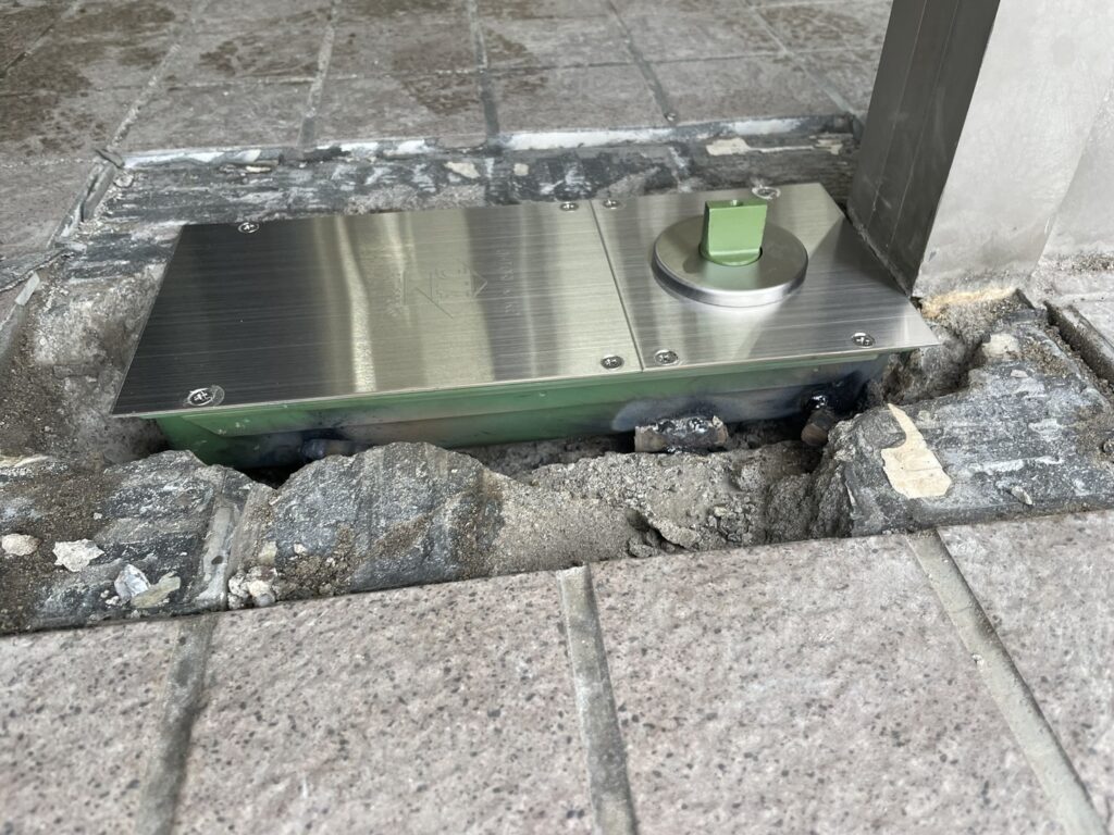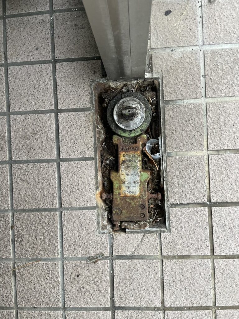 今回はそのドアヒンジの交換を行いました!長い間の雨風に耐えたヒンジは錆や劣化により扉が開くことも閉じることもできない状態に😭部品を新しい物に交換し周りのタイルを補修したことでスムーズに動くようになりました!👏