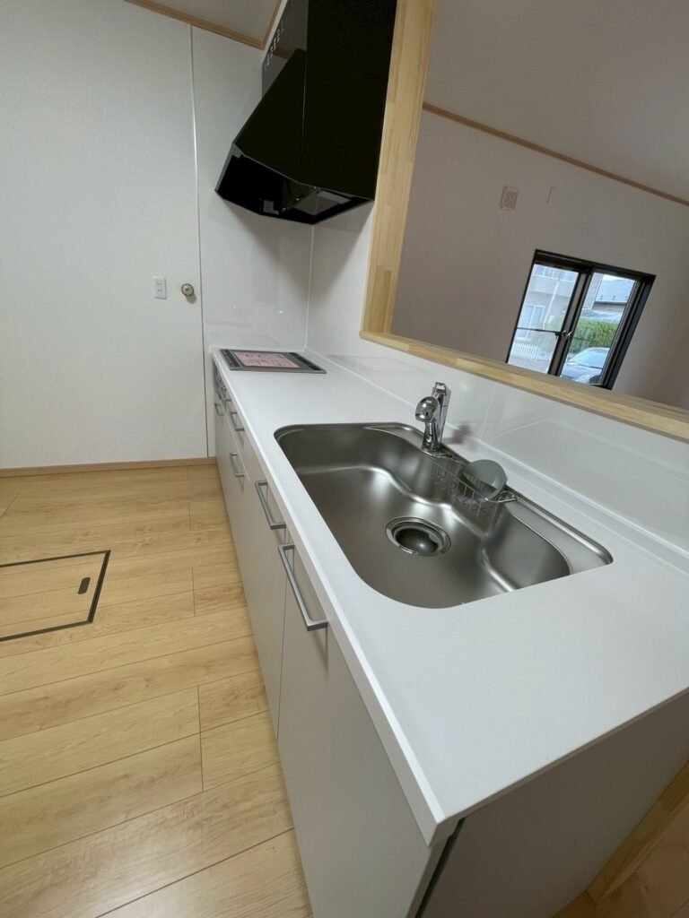 横長の鏡を設置することで浴室が開放的が感じられ大きな鏡で身だしなみを整えるのにもばっちりです!キッチンは設備をIHコンロへ変更、シンクも新しいものへと設備を一新し使いやすさもばっちりです!白を基調としたキッチンに新しくなった設備毎日のお料理も心踊ること間違いなしです🌟