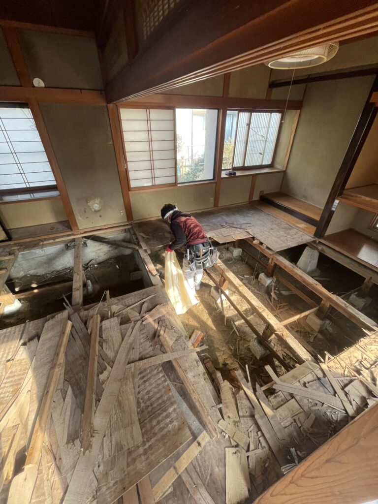 既存の床を解体してみると下地が腐食しふかふかの状態で踏むと沈んでしまう危険な状態でした😱