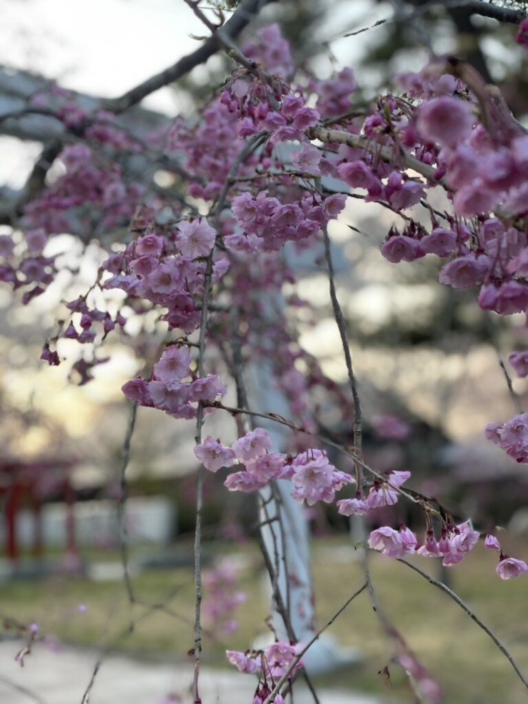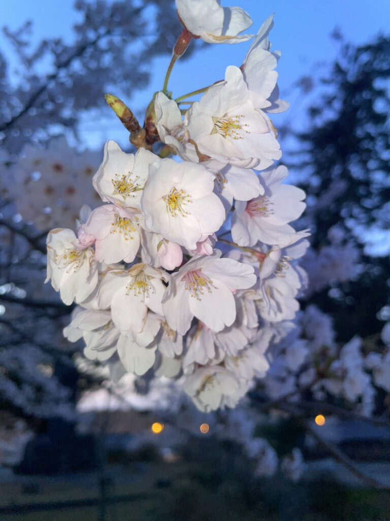 夕方のやわらかい光と桜の組み合わせがとても綺麗で、思わず見入ってしまいました。
